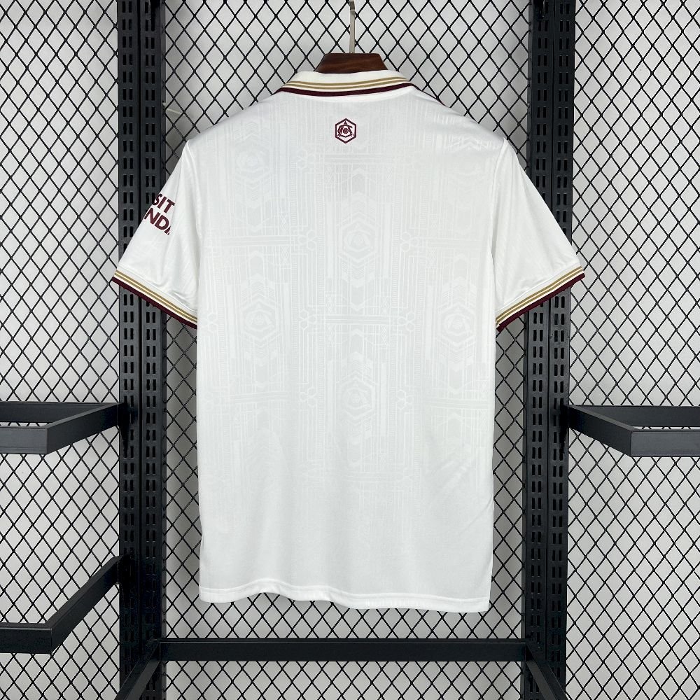 Versión Fan: Estas camisetas presentan los mismos logos y escudos que la versión player, pero están bordados, lo que les da un toque más tradicional y un poco más de peso.