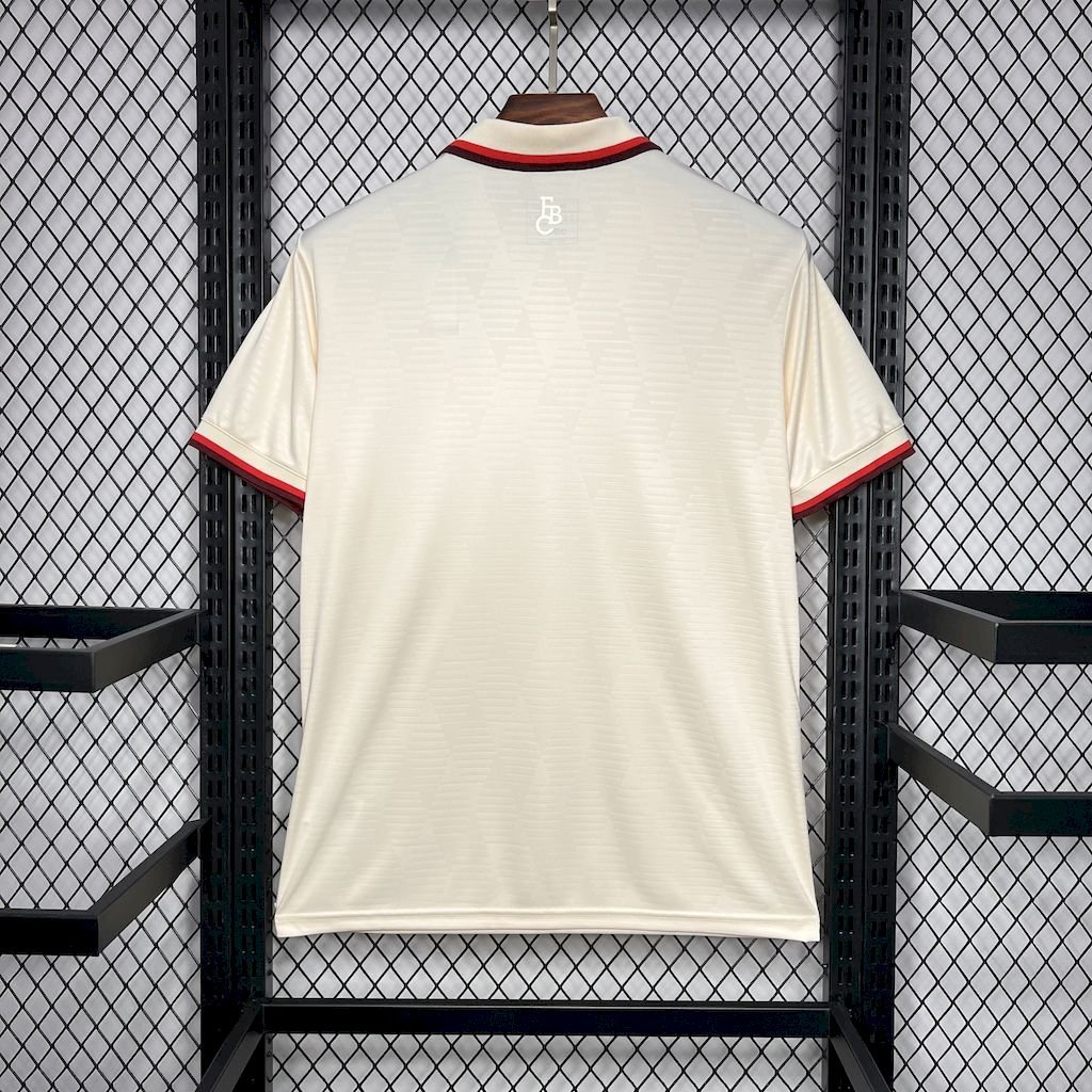 Versión Fan: Estas camisetas presentan los mismos logos y escudos que la versión player, pero están bordados, lo que les da un toque más tradicional y un poco más de peso.